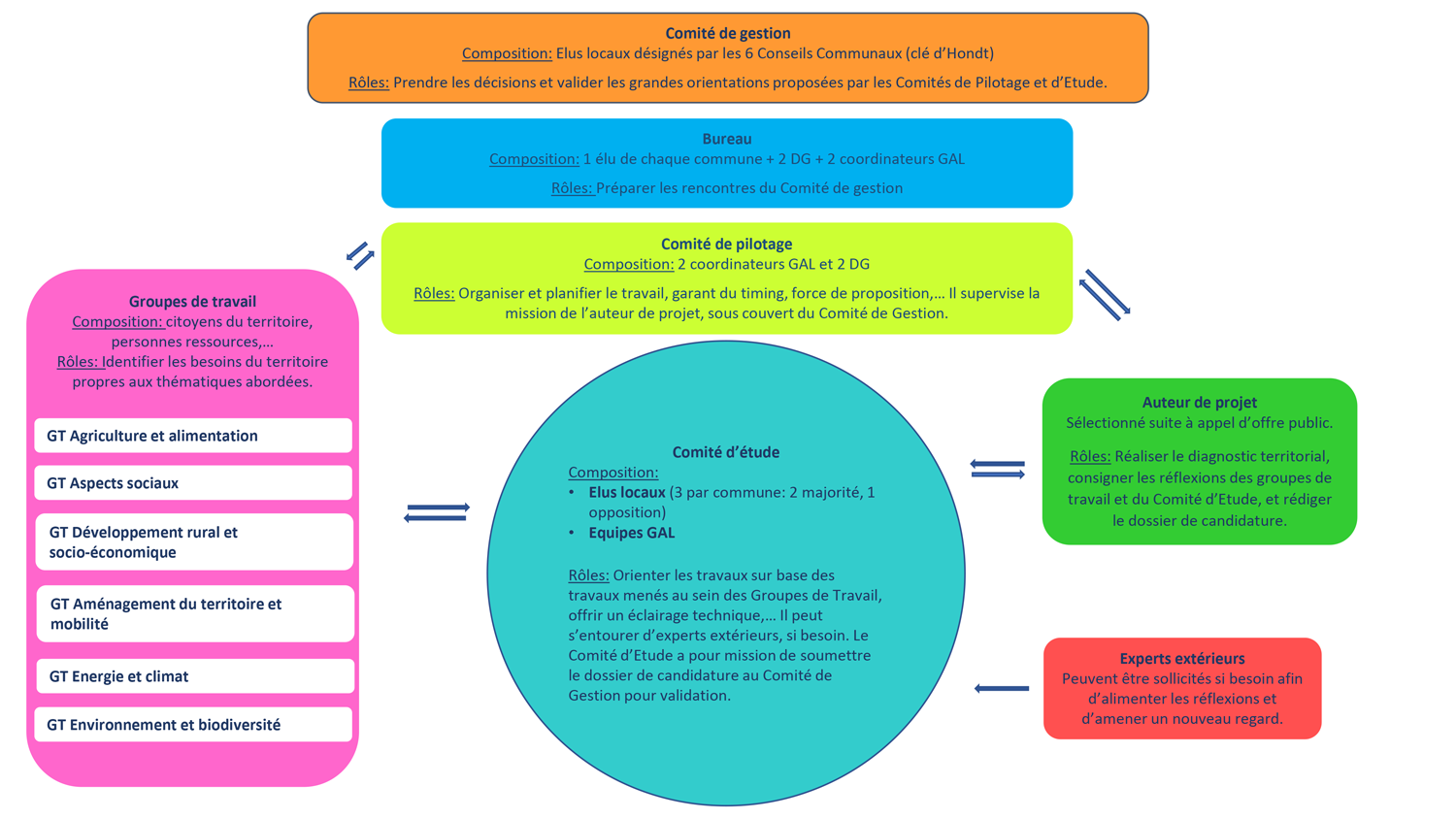 L’Association de projet réuni les 6 communes partenaires : Assesse, Ciney, Gesves, Hamois, Havelange et Ohey.